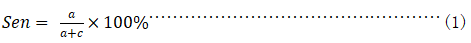 灵敏性(sensitivity, Sen)指在被检查者中,应用该诊断设备检查得到阳性结果的百分比(或将患病者从所有被检查者中分辨出来的能力)。