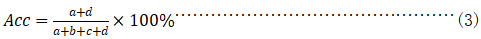 准确度(或诊断效率)(Accuracy, ACC):在被检查者中,用诊断设备检查能准确划分患病者和非患病者的百分比(或能够准确判断患病者和未患病者的能力)。